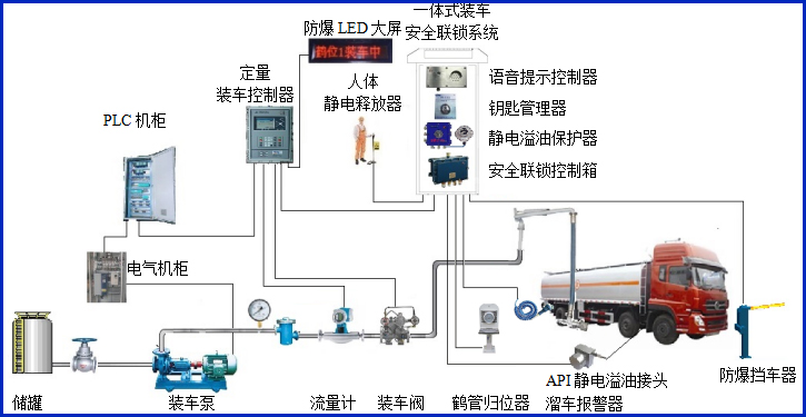 2、頂裝靜電溢油保護器帶聲光報警輸出,方便現場操作人員及時了解裝車狀態;